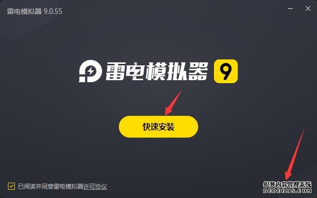 2、双击“雷电模仿器.exe”文献,进入装置界面,用户可能点击“迅速装置”采用编制默认的装置所在举行装置,也可能点击“自界说装置”自助采用装置途径,这里推举自界说装置。
