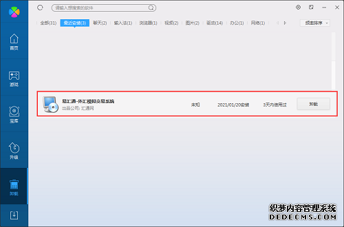 举措二:装配并掀开360软件管家,正在卸载选项的列外中找到模仿外汇来往平台软件体系,点击卸载即可