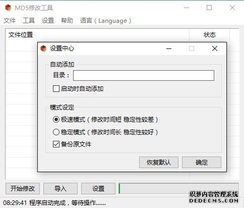 3、挑选修正MD5,发端修正列外中文献的MD5值,结果后文献的MD5值,若是未勾选急速形式,会显示修正前和修正后的文献MD5值