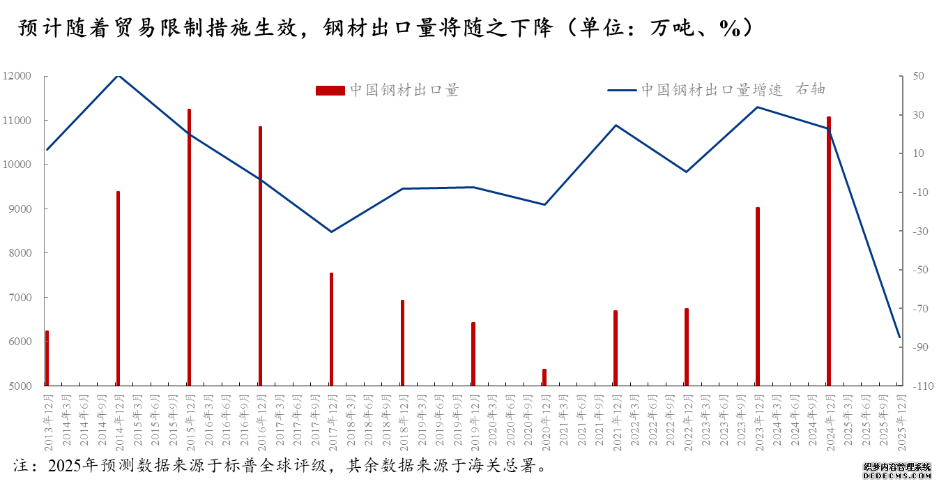 标普环球评级估计,这些贫窭叠加的信号最早将正在2025年二季度显露。2025年中邦钢铁出口量将从2024年的1.107亿吨(史书第二高位)降低15%-20%。出口量或将受到合税战略的陆续性,以及进口邦邦内钢价与中邦出口钢价的价差等影响。越南和韩邦正在中邦钢铁出口总量中的合计占比挨近20% 。反倾销作为恐将减弱中邦钢铁产物正在两邦市集的价钱逐鹿力,特别中厚板热轧钢卷是两邦反倾销税作为的紧要标的。另外,越南和韩邦的钢铁需求与中邦修筑业深度绑定。比如,越南钢材紧要用于基修和出口导向型修筑业(如制船、家电),韩邦厚板需求与制船业亲近相干。出口受阻大概间接影响中邦相干装备、零部件的出口。