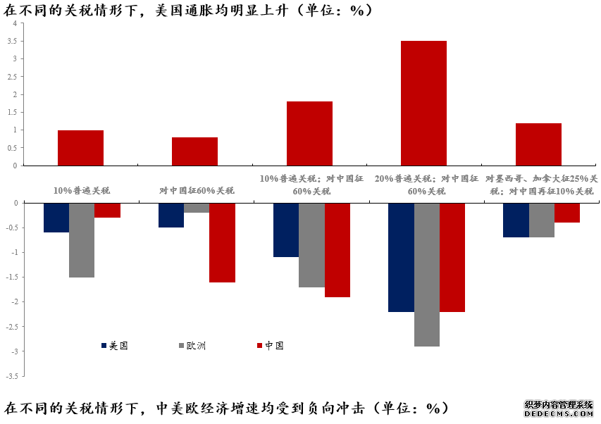 高盛与渣打银行的测算结果显示,并不如特朗普政府所述,与《海湖庄园条约》中的假定(美元升值会抵消进口商品涨价的影响)也分别:正在分别合税情状下,与中欧比拟,合税对美邦本身经济增速的负向冲锋并不小,真可谓“杀敌一千,自损八百”。借使再思索到对本身战略的公信力,对盟友的辅导力等软势力的影响,“税墙高筑”得不偿失。