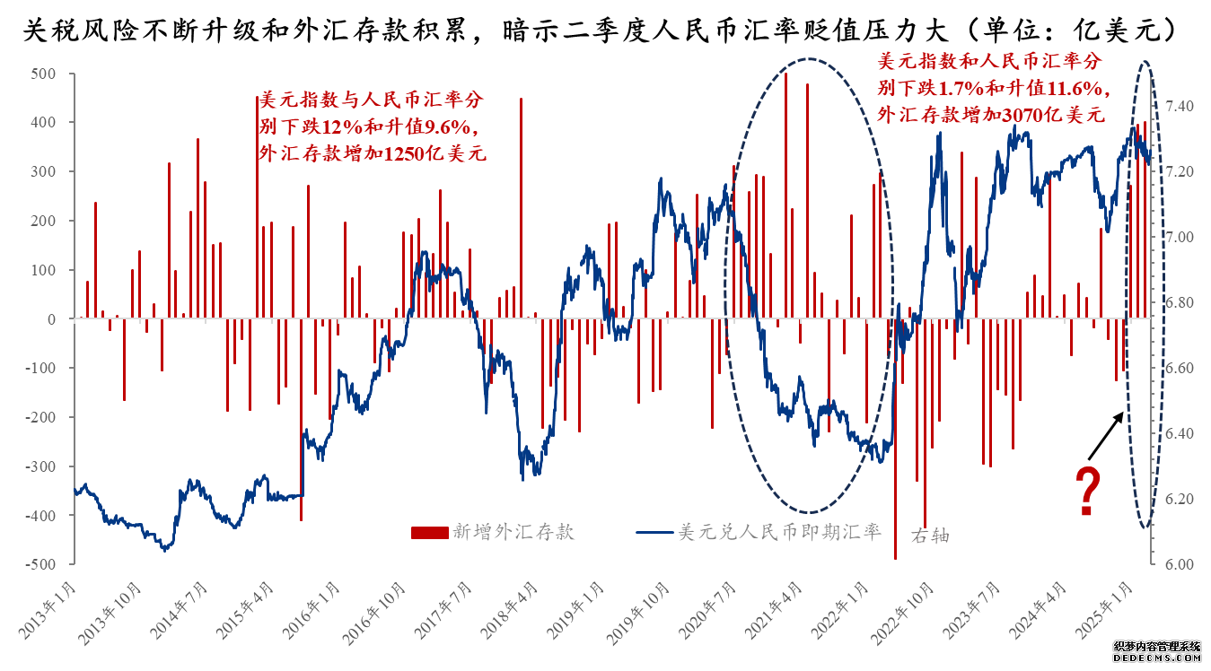 (4)美元指数下跌是美邦“搬起石头砸己方的脚”的恶果。美元指数下跌是市集对美邦经济及美元信用的不相信的涌现。公民币汇率纵使贬值,贬值幅度也仅仅是略高于美元指数降低幅度。这外明美方滥施合税只会更众地侵害本身,并不行抵达宏大己方,减弱对方的主意。咱们连接提示,合于中美股市震荡的题目,美元指数是一个特地好的观测目标。若美元指数没有强势反弹,连接正在103安排或以下(起码不行迅疾上行至105),那么离岸美元滚动性并不会缺失,非美市集会慢慢安闲下来。反之,非美市集震荡大概会加剧,不消除显露环球滚动性紧急。