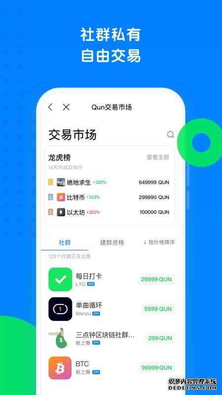 3. 社区的全体权将通过区块链账本纪录,担保线. qunqun供给了社区贸易墟市,应许用户公然贸易让渡社区。