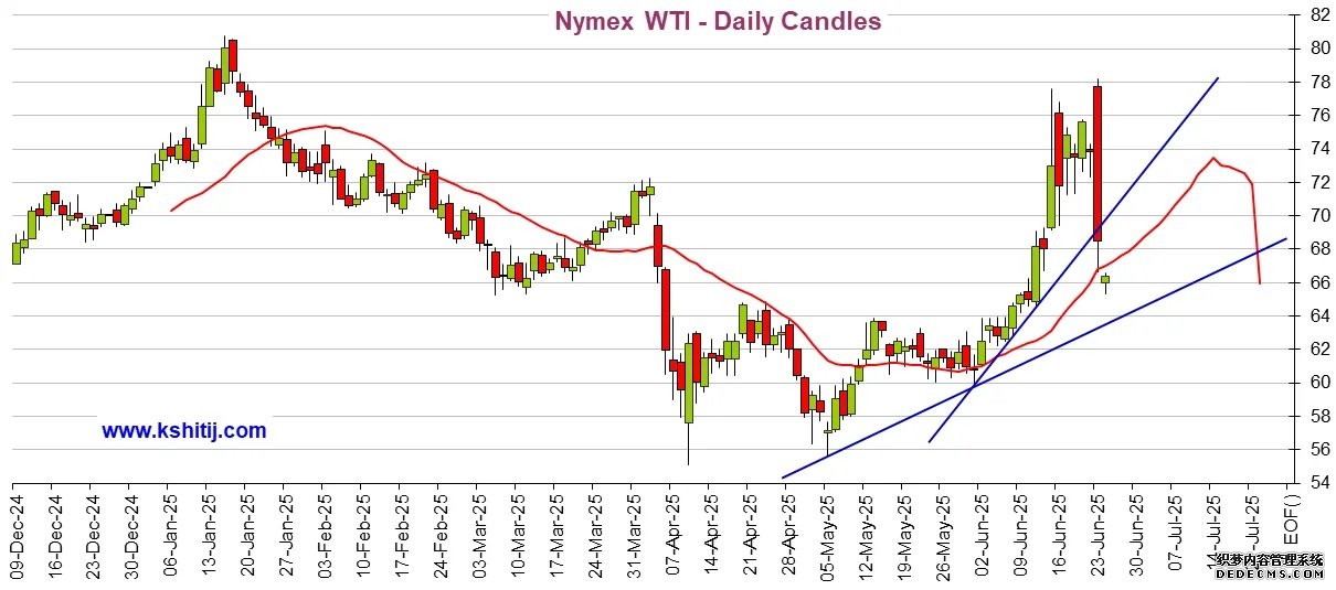 正在伊朗的温和挫折和美邦总统特朗普的停火声明之后,原油代价大幅下跌。WTI原油代价跌至64.38美元/桶的低点,近期维持位正在64美元/桶左近。只须守住这个维持位,油价大概会正在一段时期内位于64-70美元/桶区间。倘若油价跌破64美元/桶,大概会进一步跌向60-58美元/桶。