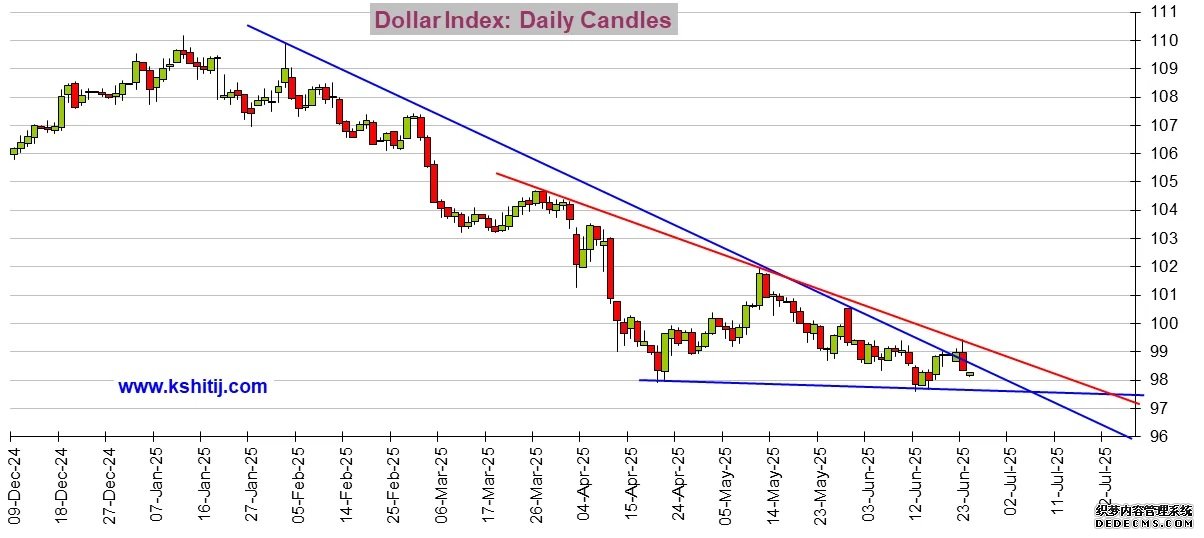 特朗普公告伊朗和以色列停火后,美元指数快速跌至98.13。估计下跌幅度将被局限正在97-96,最终大概回升向99。