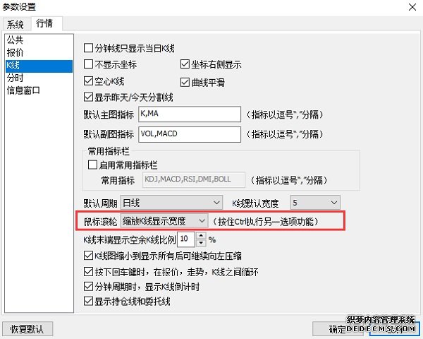 此外一种办法是熟行情参数树立里树立鼠标滚轮缩放K线、结算/收盘/开盘价企图涨跌