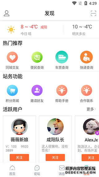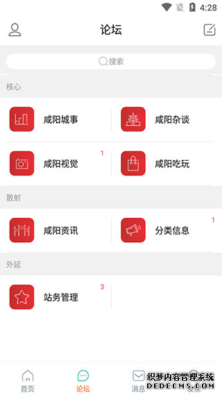 3、点击论坛模块。这里采用了分类模块供用户阅读,有城事、吃喝信息等等;