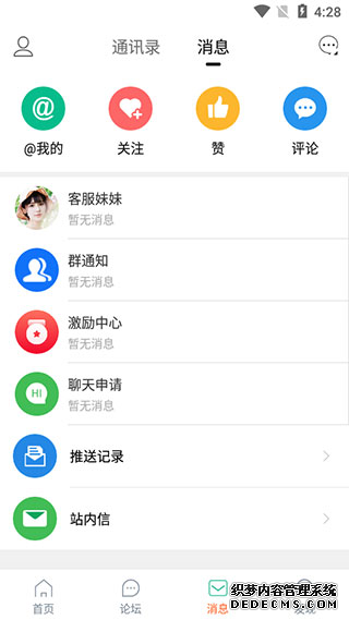 4、点击音讯模块,还可能查看体贴的朋侪、以及粉丝,可能与他们及时闲话筹议;
