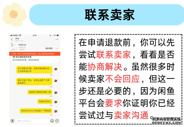 正在申请退款前,你可能先测验干系卖家,看看是否能洽商处理。固然许众时刻卖家不会回应,但这一步照样需要的,由于闲鱼平台会哀求你说明你曾经测验过与卖家疏导。