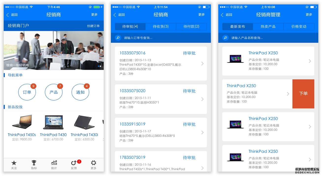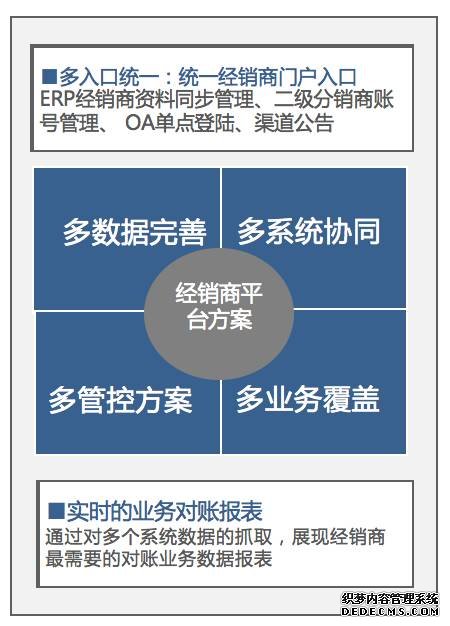 4.基于OA作事流引擎+经销商家数平台,订单、发货、售后、对账等众种营业数据都通过布局化数据形式供经销商查问和操纵,特别有序、周密、及时、无误且安好。