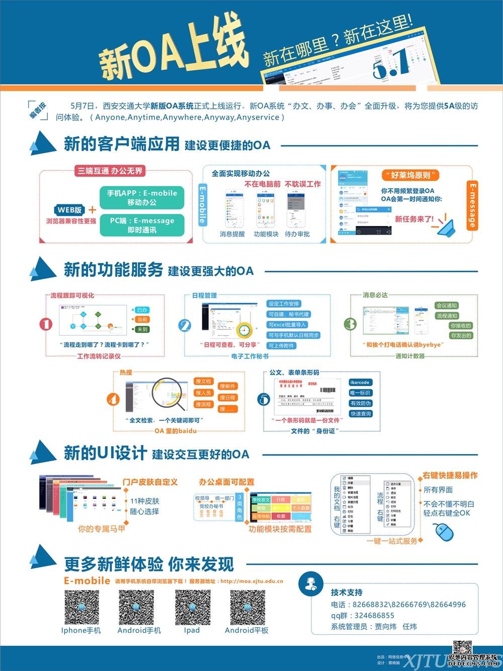 Web版新增文件身份证、日程提醒、全文检索、右键提交等功能模块,电脑客户端下载5月7日,西安交通大学新OA体例正式上线。本次新OA体例同时推出Web版(网页版)、Emessage(电脑端行使)和Emobile(手机端行使)三大平台体例,正在升级改版老OA体例的条件下,拓展挪动办公能效。Web版新增文献身份证、日程指示、全文检索、右键提交等效用模块,让文献阅办特别高效;Emessage可竣工音问指示、即时通信、音问必达、音信共享等群组效用,让文献流转督办更为便捷;Emobile行为挪动办公的紧要载体,和Web版、Emessage坚持及时同步,完善配适挪动审批、音问指示、文献盘查、日程同步、邮件收发等挪动办公需求,让挪动办公体验更为舒畅。新OA体例扫数简化“办文、工作、办会”操作流程,满意广漠教职工随时、随地、随心、全方位、众渠道的挪动办公需求。