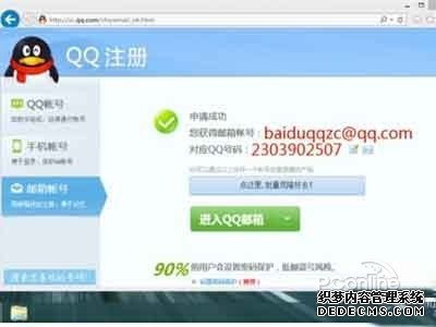 四、然后提示注册已得胜,这时连QQ号码也有了,是附带的,跟注册邮箱暗号一律。