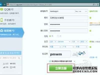 三、接着遵照它的注册提示区别提上你的邮箱账号、名称、暗号、日期,填完之后就点击当即注册。