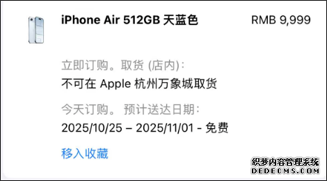 据城市速报报道,记者查问涌现,目前杭州线下店已无货可取,仅可正在线预购,交付时刻已推迟至10月25日-11月1日。