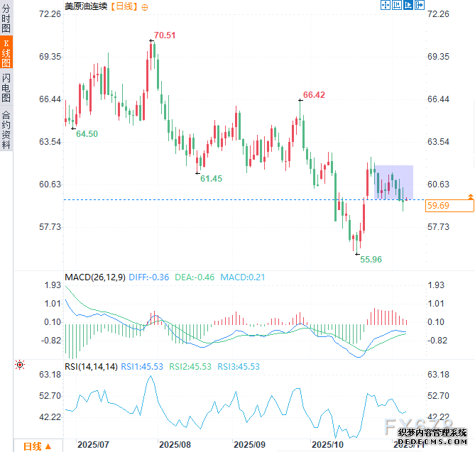 下行方面,若油价跌破59.00美元心思合口,预示卖压加剧,或许为下探10月20日55.96美元的低点铺平道道。