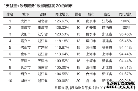 11月28日,由中山大学颁布的《搬动政务效劳呈文(2017) 更始与挑拨》完全映现了政府、互联网平台更始互补的搬动政务效劳生态:过去一年中,寰宇70个大中都市,共计供应514个政务APP;寰宇有364个都市、县域通过支拨宝为住户供应政务效劳,效劳品种共计100项,同比晋升78.6%。个中,中西部区域都市、县域拉长最为明显。