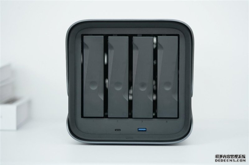 取下磁吸式前盖可能看到4个援救热插拔的硬盘托架,可能装置4个3.5寸或者2.5寸硬盘。