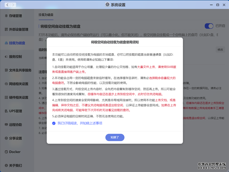 只须要正在编制筑立的“挂载为磁盘页面”被选择开启“将极空间主动挂载为磁盘”,无论正在内网和外网,都可能将NAS外挂为当地磁盘。
