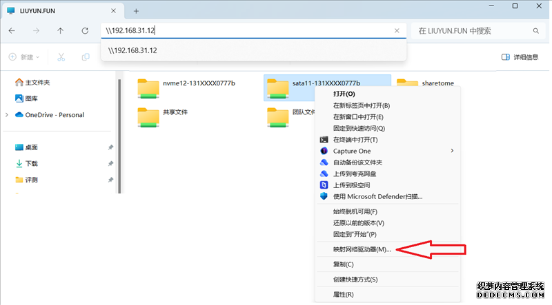 比方我这里NAS的IP地点是192.168.31.12,正在地点栏输入\\192.168.31.12就行了,然后输入账户暗号就能看到NAS里的文献夹。任选一个文献夹单机右键将其照射为汇集驱动器。