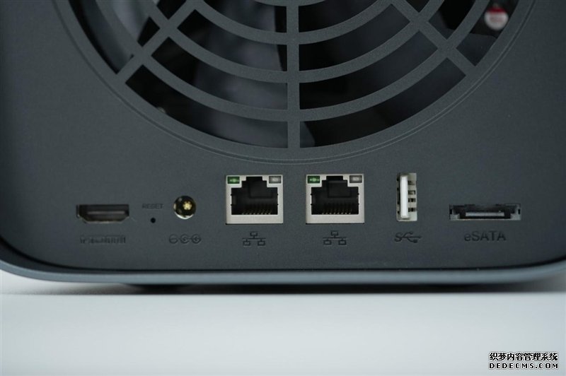 从左到右挨次是HDMI、重置孔、电源插孔、2个2.5Gbps网口、USB 2.0接口以及eSATA接口。