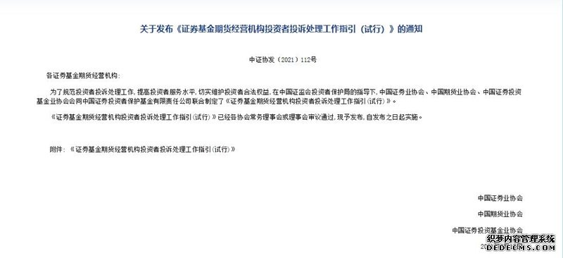 中邦证券业协会、中邦期货业协会、中邦证券投资基金业协会拉拢宣告《证券基金期货筹备机构投资者投诉管束处事指引(试行)》