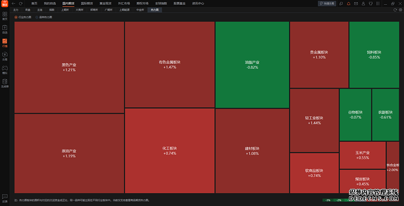新增热力求成效,助助查看行业及种类热力求。热力求板块面积与重淀资金数额成正比,重淀资金数额越大,则对应板块的面积越大。板块颜色与对应的涨跌幅干系,涨跌幅度越大,则对应板块的颜色越深,实在颜色与涨跌幅的对应相干可通过热力求右下角的颜色标尺查看。