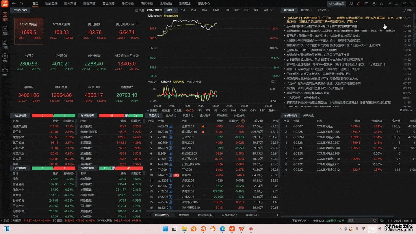 PC端行情图现已助助同时查看5个副图,您可正在期货详情页、实盘营业界面、模仿营业界面的副图右上角单击“加号”按钮填补副图数目。