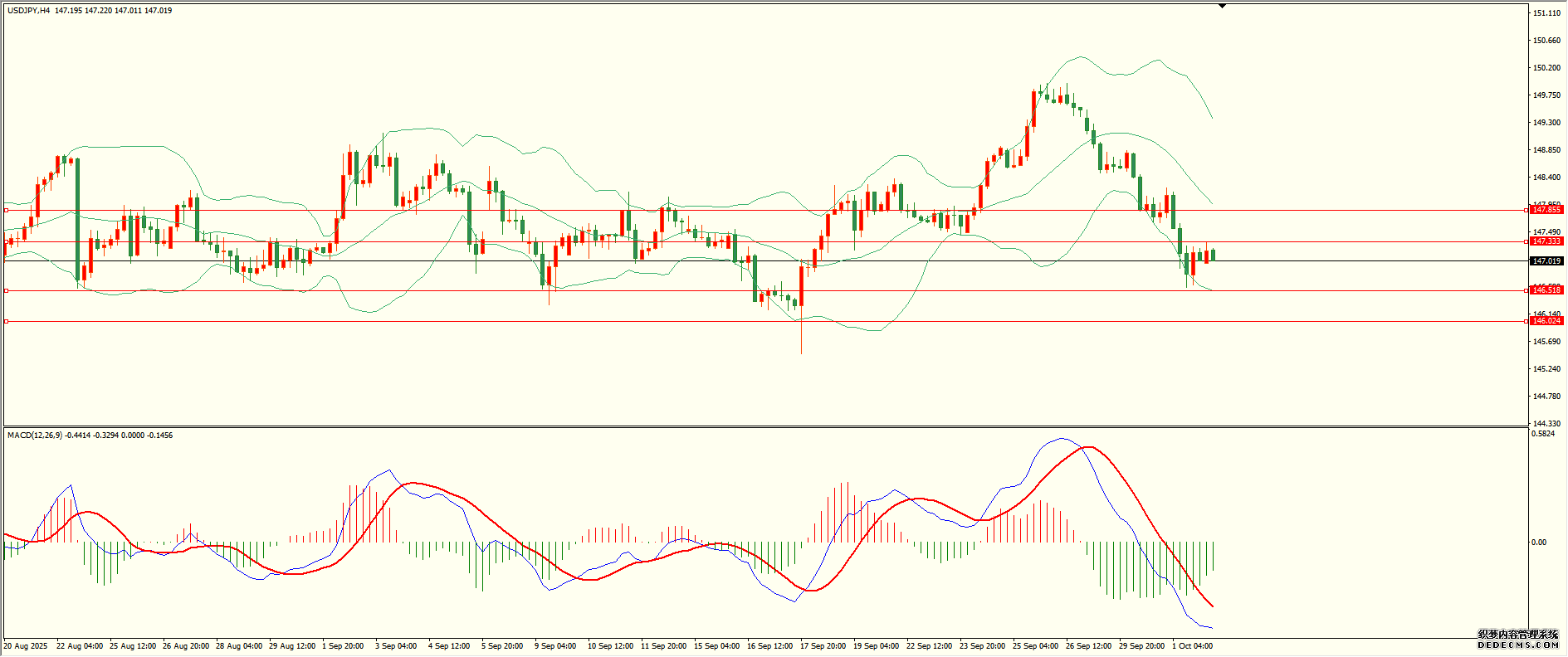 美日昨日反弹至第一阻力延续下行,纽约盘时段回落至第二支柱下方略有松弛,日线报收中阴线,目前下方邻近前低聚集支柱区,下破后方可延续,从4H来看,布林中轨偏下,MACD零轴下方运转,日内上方首要阻力147.30-40,第二阻力147.85,下方支柱146.50,146.00,仍旧正在第一阻力下方短线希望测试第一支柱。