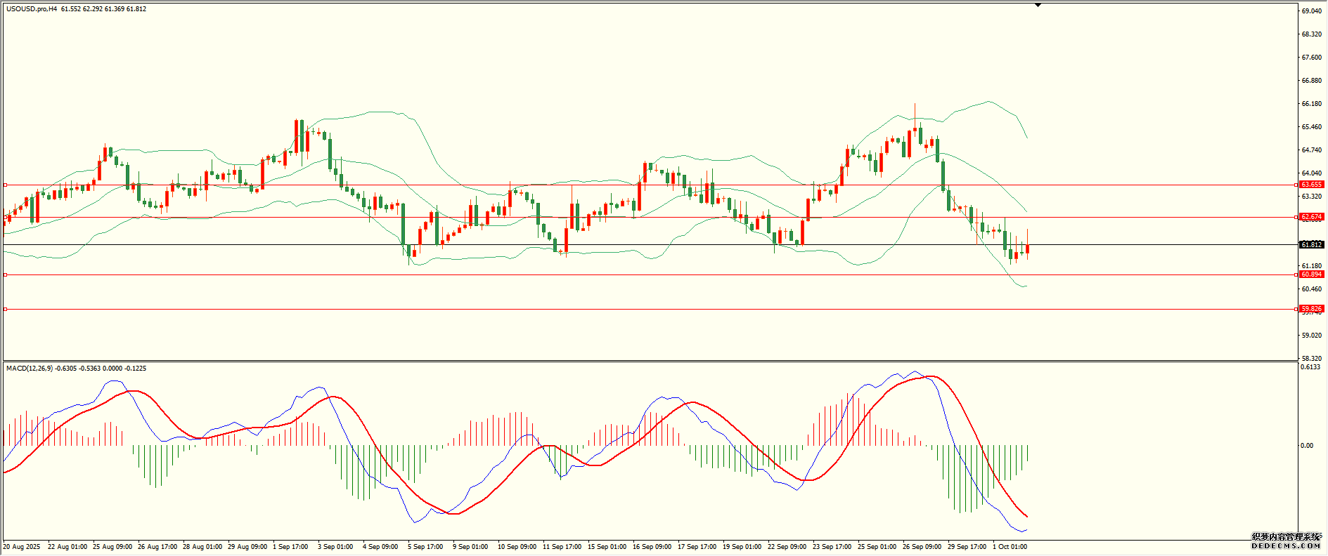 原油昨日小幅反弹后延续走低,纽约盘时段回落至第一支柱跌势松弛,日线报收中阴线,收盘地点触及前支柱,失守后方可掀开下行空间,从4H来看,布林中轨偏下,MACD零轴下方运转,日内上方首要阻力62.65,第二阻力63.60-70,下方支柱60.80-90,59.80,仍旧正在第一阻力下方短线希望测试第一支柱。