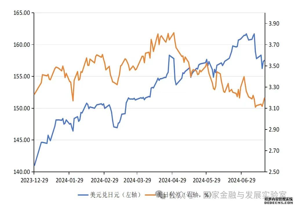 2024年上半年,日元兑美元汇率涌现大幅贬值。2023年12月29日至2024年7月19日,日元从1美元兑141.03日元贬值至1美元兑157.50日元,贬值幅度为11.68%。2024年7月10日,跌至1美元兑161.68日元的低点(睹图3)。