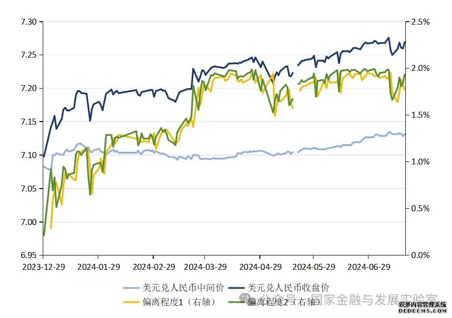 进一步地,测算当日中央价与当日收盘价的偏离水平2,出现从2024年二季度开首,偏离水平2摇动周围大致正在1.8%-2%的区间摇动。这诠释,正在邦民币兑美元汇率逐日浮动幅度为2%的策略规矩的影响下,邦民币兑美元汇率蜕变均正在可控周围内摇动。这也是为何邦民币兑美元汇率的收盘价和中央价继续偏离,但邦民币兑美元汇率收盘价连续未跌破7.3的由来之一。