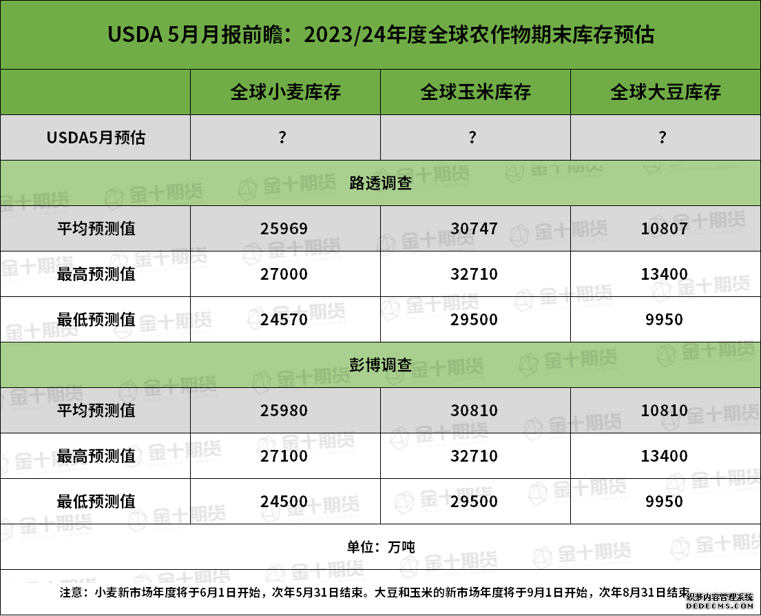 前瞻数据:美邦2022/23年度以及2023/24年度大豆、玉米、小麦期末库存预估