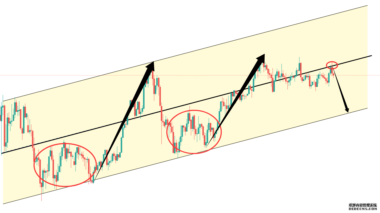 现正在看涨看跌的来由都有,以是根基面就不聊那么众了,看行情即可,扫数大级其它上涨通道目前维持完好,黄金仍然正在内部运转,并且还正在这内部生长了不少的小级别通道和形式,纵然现正在是横盘,但横盘的缺陷是什么?盘中的上涨趋向线然而倾斜的,你不绝维持横向,那就必然会把地方拉到趋向线下方,留神看我图中标注的下跌箭头高点,同样的4250相近,是不是仍旧来到了趋向线之下?这也是恰恰可能看转跌的地方。