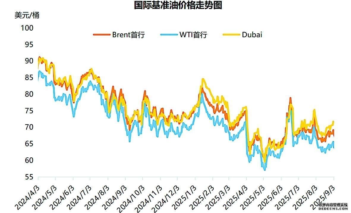 从开收盘价钱看,前8个月邦际油价转变幅度较大。2025年1月2日,布伦特原油和WTI不同以74.93美元/桶、71.85美元/桶开盘,8月31日不同以67.44美元/桶和64.00美元/桶收盘。两种原油8月31日的收盘价与1月2日的开盘价比拟,不同下跌了7.49美元/桶和7.85美元/桶。