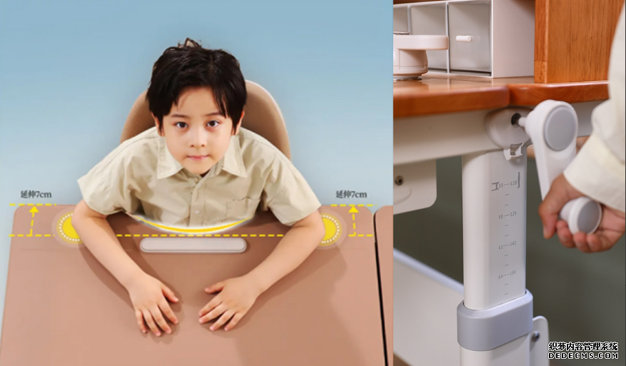 小C口策画:奇异的小C口策画,使桌面延长7cm,两侧的托肘板为肘部供应痛疾维持,让孩子无需再通过哈腰趴桌寻找维持点。这种策画让精确坐姿成为身体的本能拔取,而非须要用心保护的仔肩。