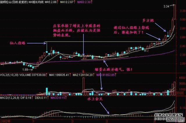 另有一种回档时刻稍长的神仙指途。正在小山头的神仙指途往后股价会有回落,此时会产生一组托压互变的图形,假设后面股价能冲过山头,那么即是黑马!