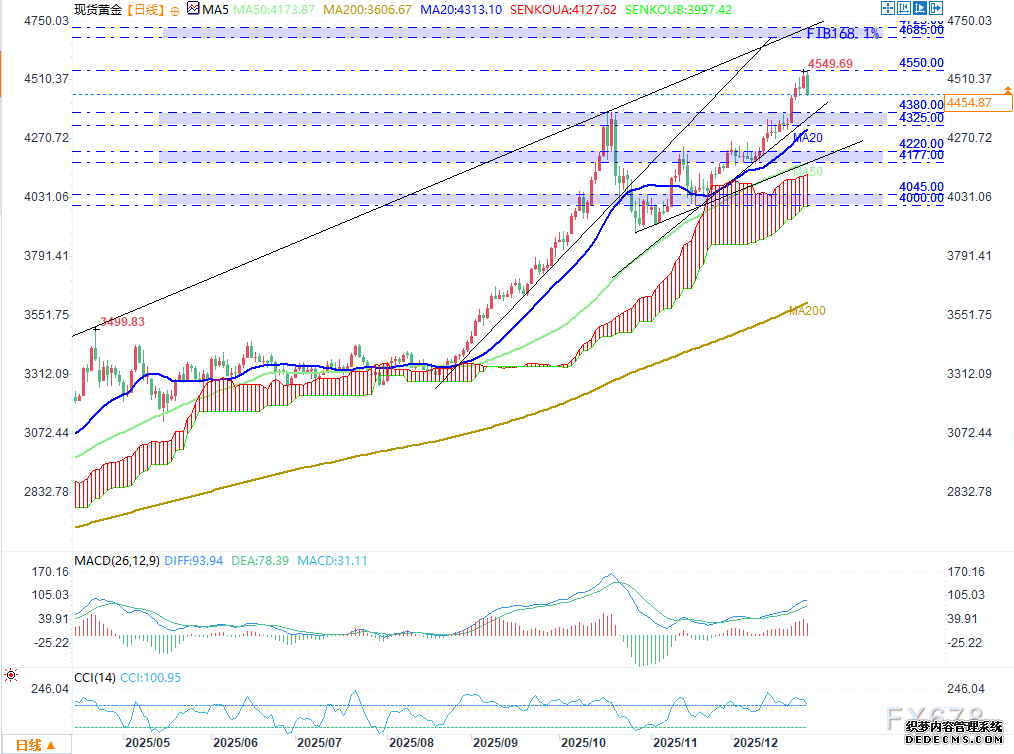 500)this.width=500 align=center hspace=10 vspace=10 rel=nofollow/圣诞假期时刻黄金走出一波强势上涨行情,价钱冲高至4449美元的史书全新高点;而正在周日,美邦总统唐纳德·特朗普与乌克兰总统弗拉基米尔·泽连斯基于佛罗里达州进行面临面会见,此次会说开释出安全同意希望告终的踊跃信号,虽然两边并未布告任何的确同意细节与年华筹划,受该信息影响,黄金自此开启回调走势。