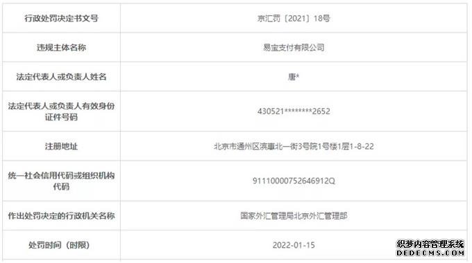 客岁7月,中邦公民银行业务料理部(北京)公示行政惩办音讯,易宝支拨因未依据轨则执行客户身份识别任务、未按轨则报送可疑业务呈报,被罚款291.1万元。时任总司理、反洗钱元首小组组长唐彬对易宝支拨违法活动负有仔肩,被惩办款8.14万元。